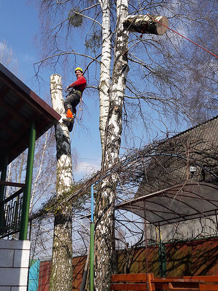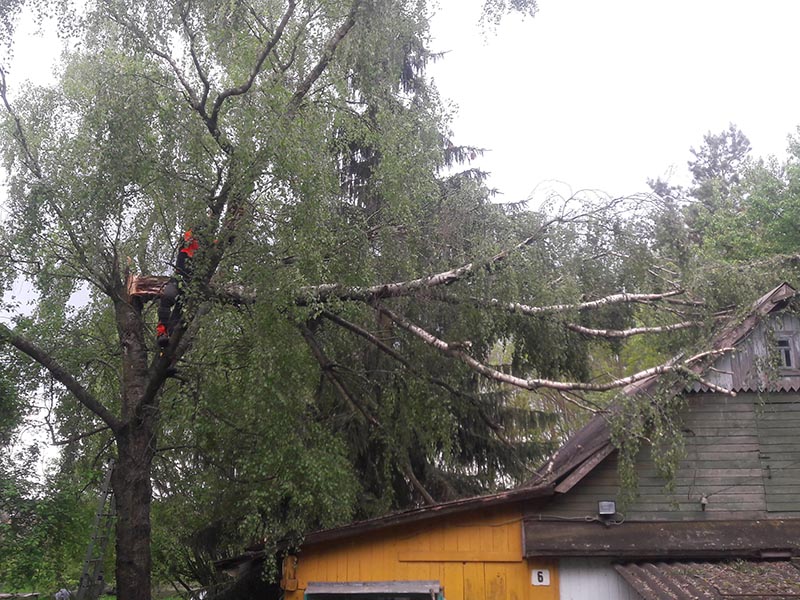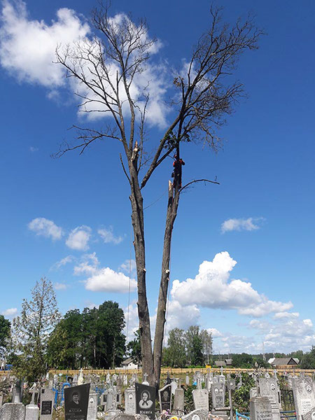 У бабули в деревне Внучки на участке в проводах рос огромный вяз и при грозах было страшно и за постройки, и за электричество. Через Интернет нашёл координаты специалистов из УдалимДерево.бел. Я позвонил и мне объяснили, что могут убрать дерево методом промышленного альпинизма. Мы договорились о примерной сумме и через пару дней парни приехали и спилили его. Теперь моя бабуля осталась довольна и не переживает за дом. Спасибо Вам.